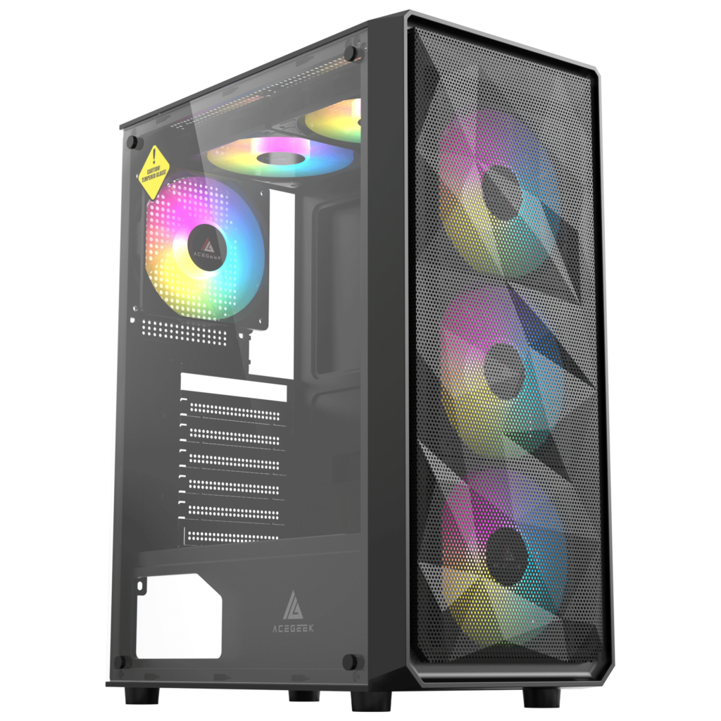 To house all these components, the Acegeek Diamond case offers both aesthetic appeal and practicality. With its sleek design, tempered glass side panel, and RGB lighting support, the Acegeek Diamond case not only looks great but also ensures proper airflow to keep your system cool. It provides ample space for all your hardware, with cable management features to keep your build clean and organized.