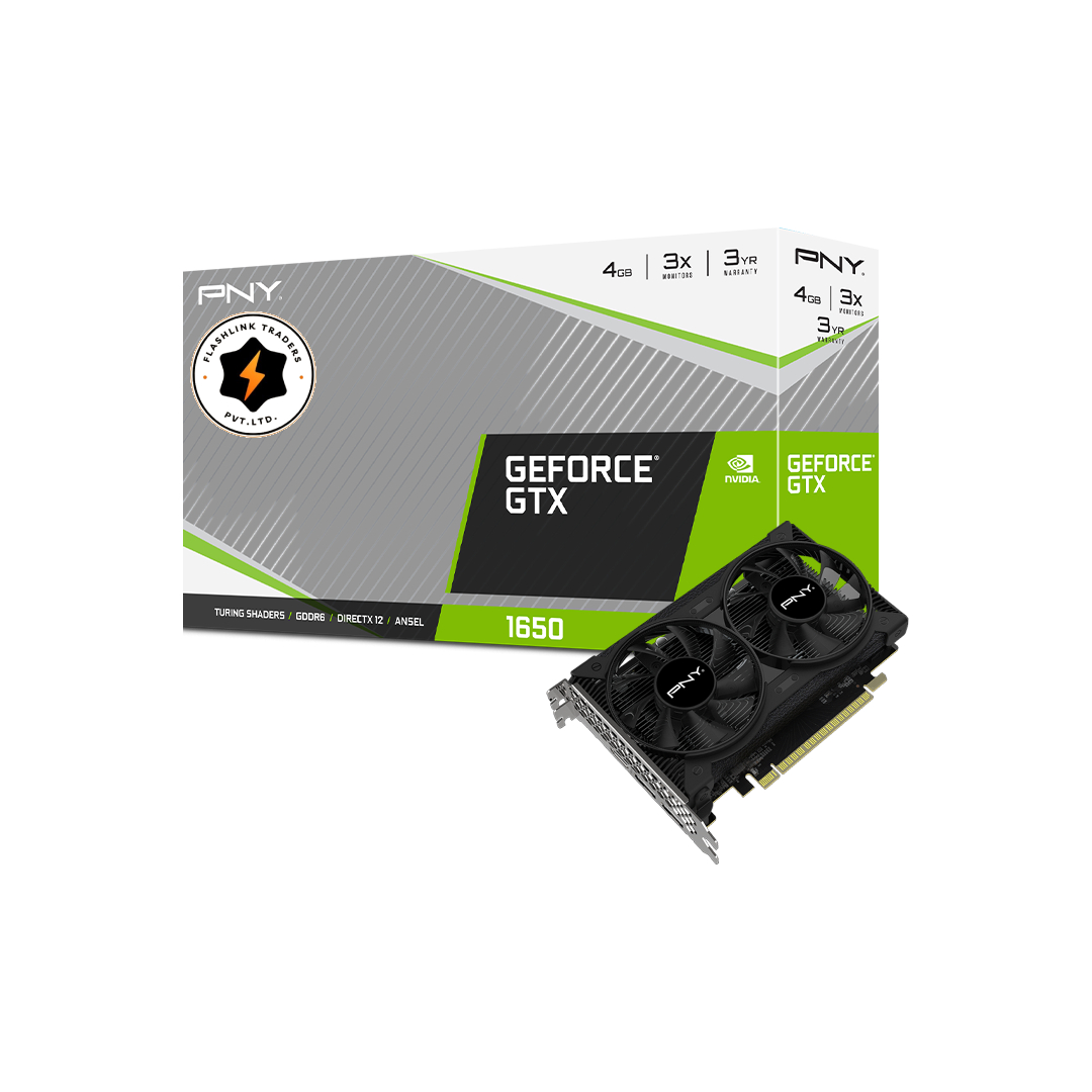 Elevate your gaming and multimedia experience with the PNY 1650 4GB GDDR6 Dual Fan Graphics Card. Featuring NVIDIA Turing™ architecture, 4GB of GDDR6 memory, and dual fan cooling, this card delivers stunning visuals and efficient performance. Explore the latest DirectX® 12 Ultimate games, enjoy tear-free gaming with NVIDIA G-SYNC™ technology, and capture breathtaking screenshots with NVIDIA Ansel™. Ideal for gamers, content creators, and multimedia enthusiasts alike.